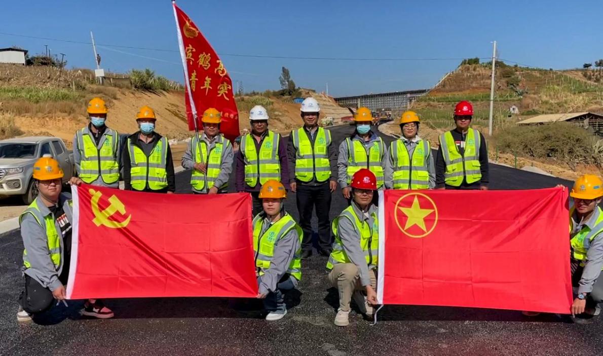 透板屄12月11日下午,第三直管部宾鹤项目在沥青摊铺现场举行青年突击队授旗仪式...